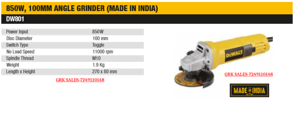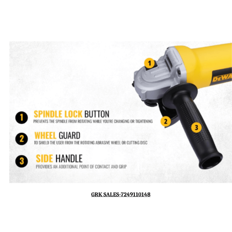 DEWALT DW801-IN, 850W, 4'' (100mm) Heavy Duty Angle Grinder Engineered For Heavy Duty Applications with Spindle Lock and Toggle switch, 2 Year Warranty (SIDE HANDLE INCLUDED)