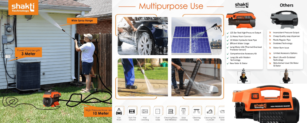 Are you tired of endless scrubbing, or does your deck need more care than you can handle? Still using a garden hose to clean your patio and sidewalks?The 120-bar electric pressure washer from Shakti Technology is built to handle the toughest cleaning jobs — from patios and decks to driveways, car washes, and house siding. Durable and reliable, this high-performance washer makes tough cleaning tasks faster and easier. Get ready to see everything shine, and finish your cleaning in a fraction of the time.